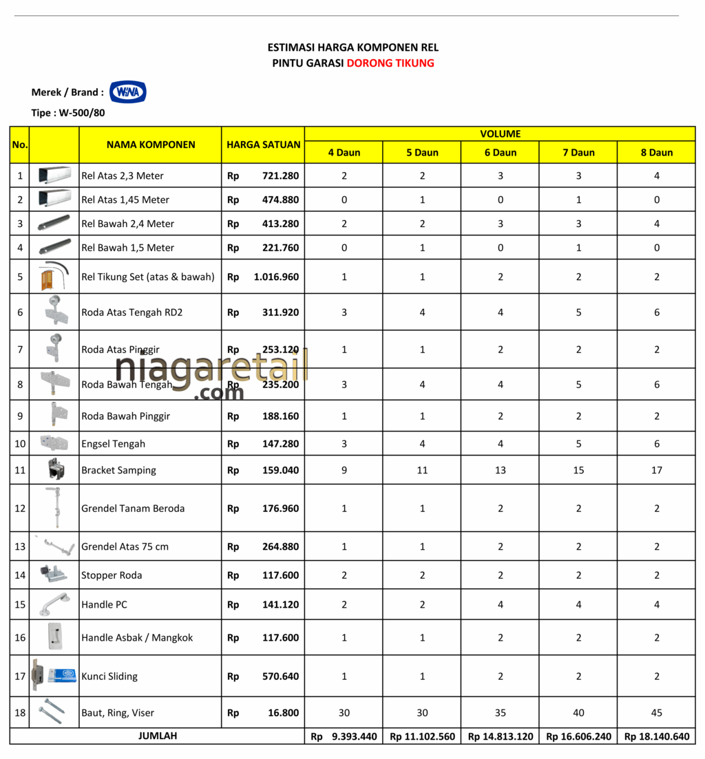 **Catatan: Hanya paket komponen rel, tidak termasuk daun pintu.**